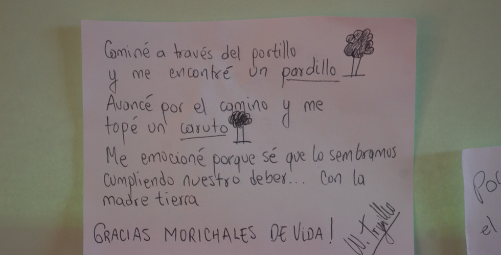 Aquí, en esta tierra lejana donde el calor de su gente abraza, la comunidad de Mapoy espera implementar sus procesos de restauración y participación comunitaria, ya no solamente de Moriche, se llama Bosques de Vida porque espera la propagación y siembra de más de 40 especies de plantas nativas. Ya no solamente en Mapoy, el área de influencia esta vez abarca a las veredas de Caribabare, Puna Puna, Sabana la vieja y La Lobería en donde también se promueven procesos de adopción de sistemas sostenibles.